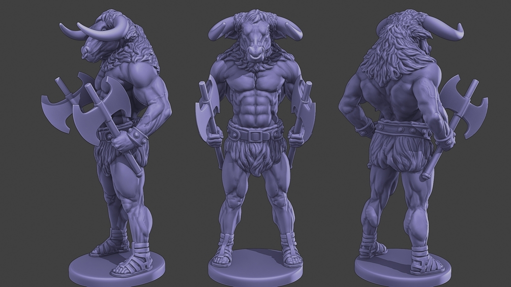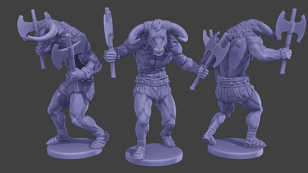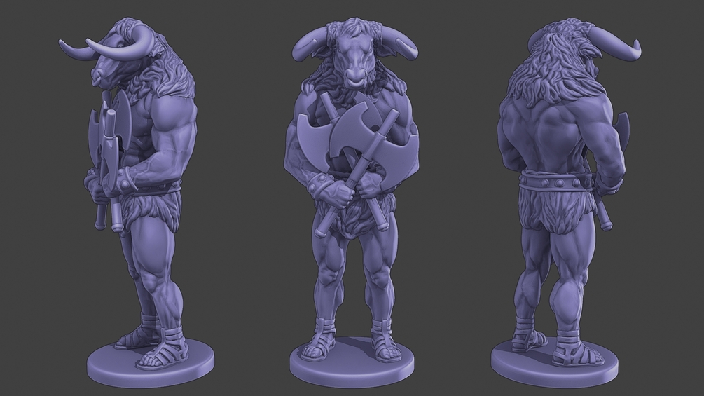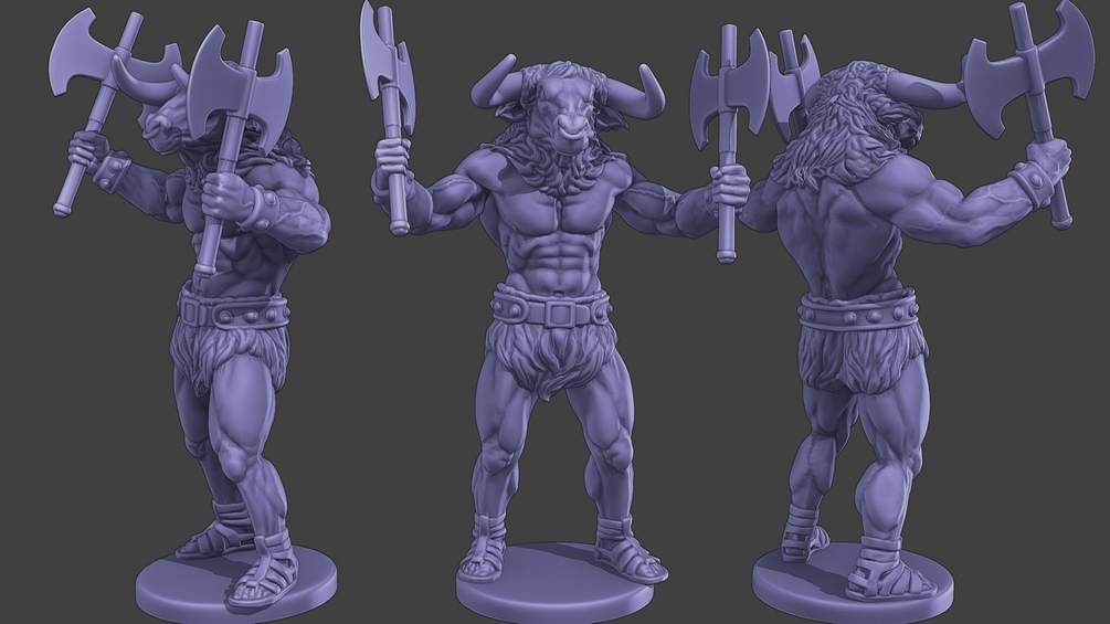- 1 Mesh Model. Minotaur Warrior Stand two Axes. Figure and base merged or figure only.