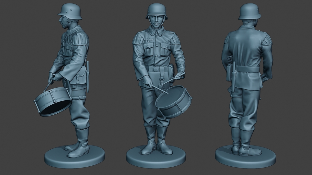 - 1 Mesh Model. German musician soldier ww2 Stand bass drum G8. Figure and base merged or figure only.